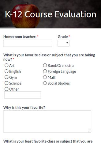 Free trialWorking as an educator requires wearing a lot of hats, and while the work is certainly rewarding, it provides its share of challenges, too. In addition to working with students, there are the concerns of parents, administrators, other educators, and other stakeholders to consider. Formsite’s Education Form and Survey Templates can help. With our sample templates and easy to use form builder, you can stay organized, reduce busywork, and gather all the information you need right when you need it. Formsite Education Form Templates are also mobile-friendly and can be embedded into any website, including WordPress, Wix and other site builder-created websites.